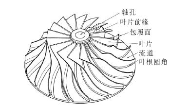 整體葉輪是離心式空氣壓縮機(jī)中的核心零件,其作用是將電動(dòng)機(jī)的機(jī)械能轉(zhuǎn)化為空氣動(dòng)能,提高輸出空氣的壓力。整體葉輪結(jié)構(gòu)復(fù)雜,加工難度大,尤其是加工葉片和流道時(shí),容易產(chǎn)生干涉,流道寬度比較小,無(wú)法使用大直徑刀具,加工效率低。